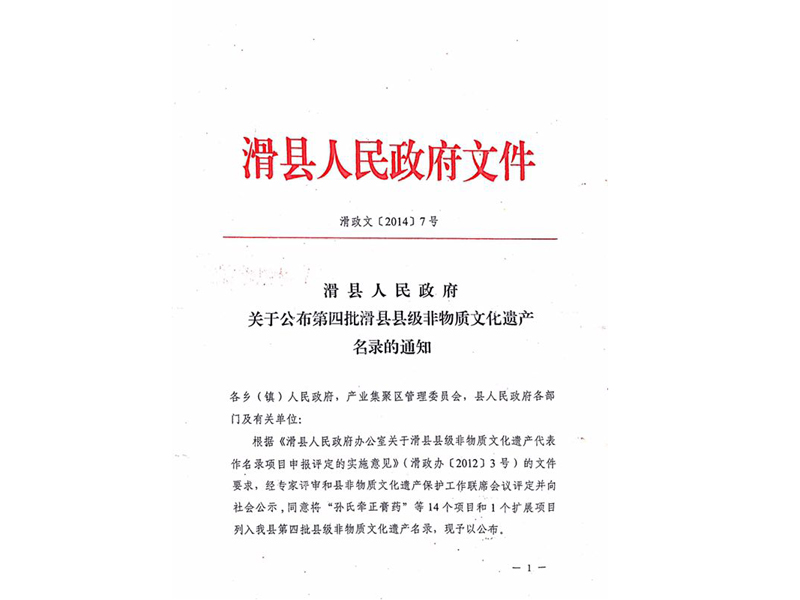 传承谱系表代数性别性别生卒年月籍贯第 一代孙维叙男1731年—1817年河南省滑县白道口镇第 二代孙九德男1762年—1846年河南省滑县白道口镇第 三代孙凤阜男1788年—1876年河南省滑县白道口镇第 四代孙永元