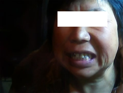 岳美菊 女 47岁 白道口北留存 面瘫 面瘫25天,患者未到,家属述20天前突然嘴歪。随在四间房用膏药两贴没见好转,患侧流泪,漏水、饭。患侧重度面瘫,偏头疼,高血压史一年,经不调,余既往(-)